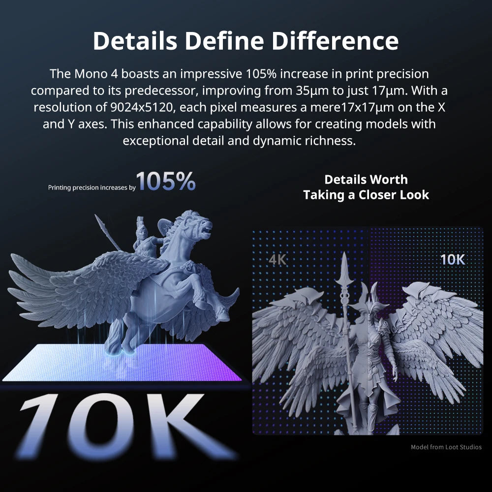 Photon Mono 4 AE Version LCD UV Resin 3D Printer High-Speed 3D Printing 7" 10K high-definition screen 153×87×165mm