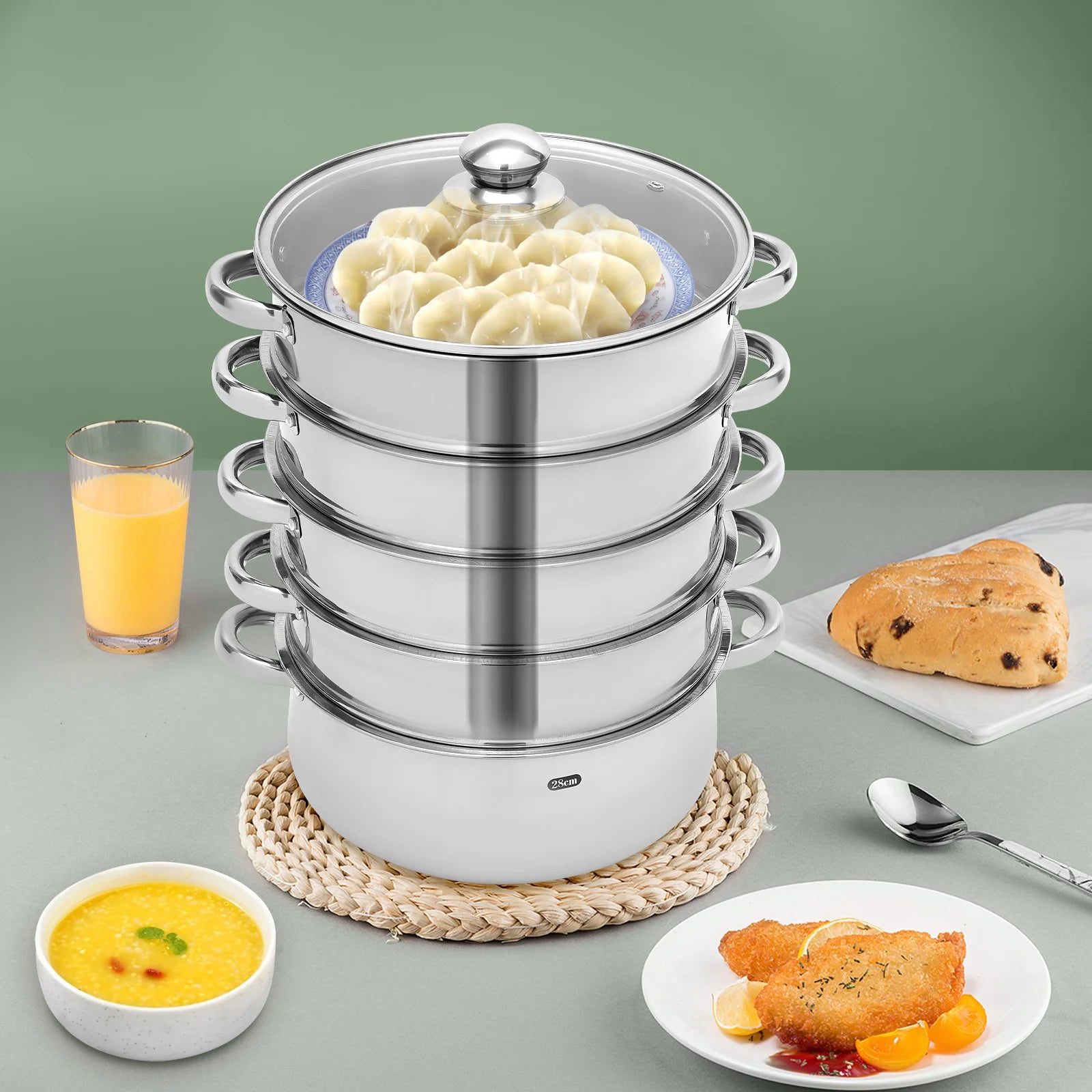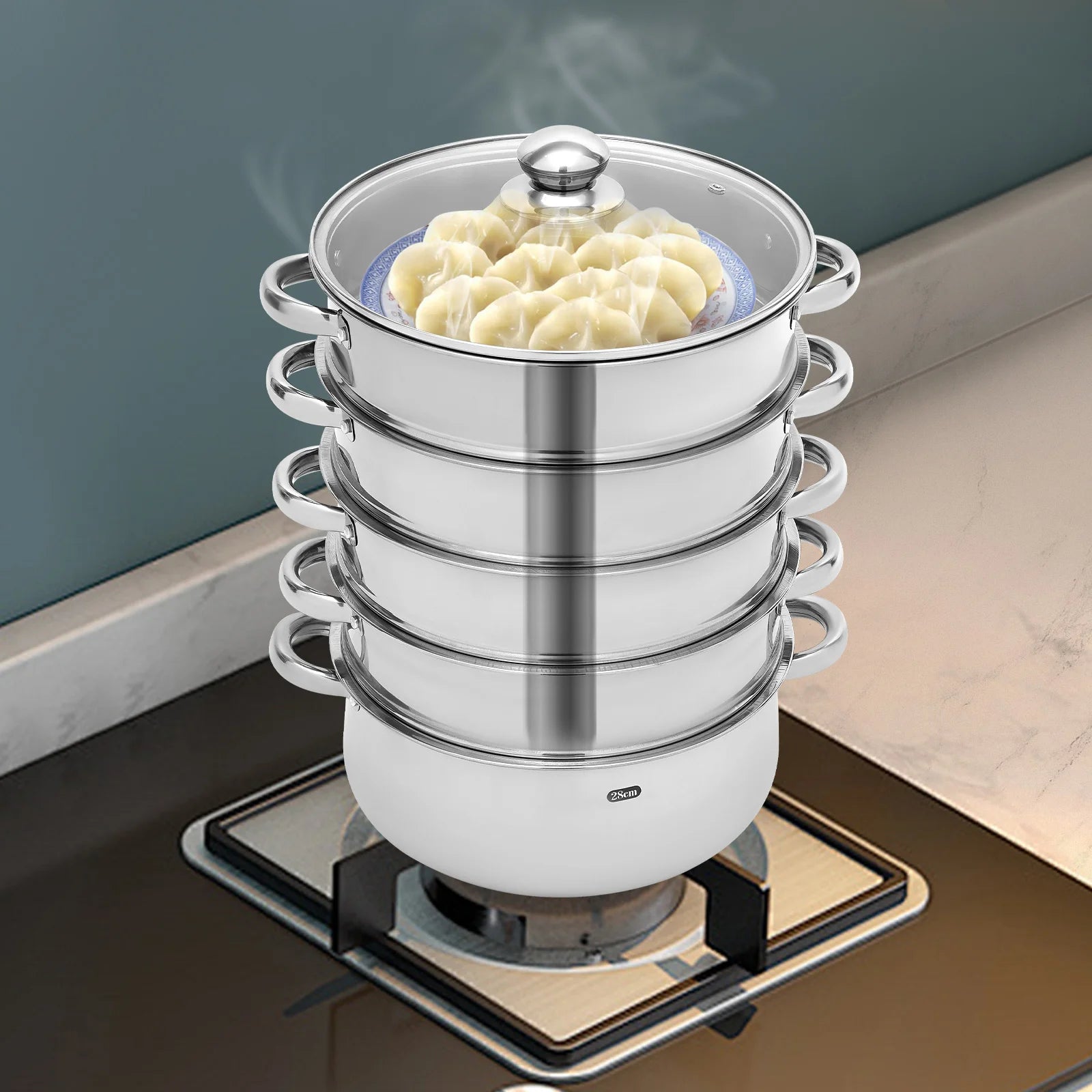 5 Tier Stainless Steel Steam Cooker with Glass Lid