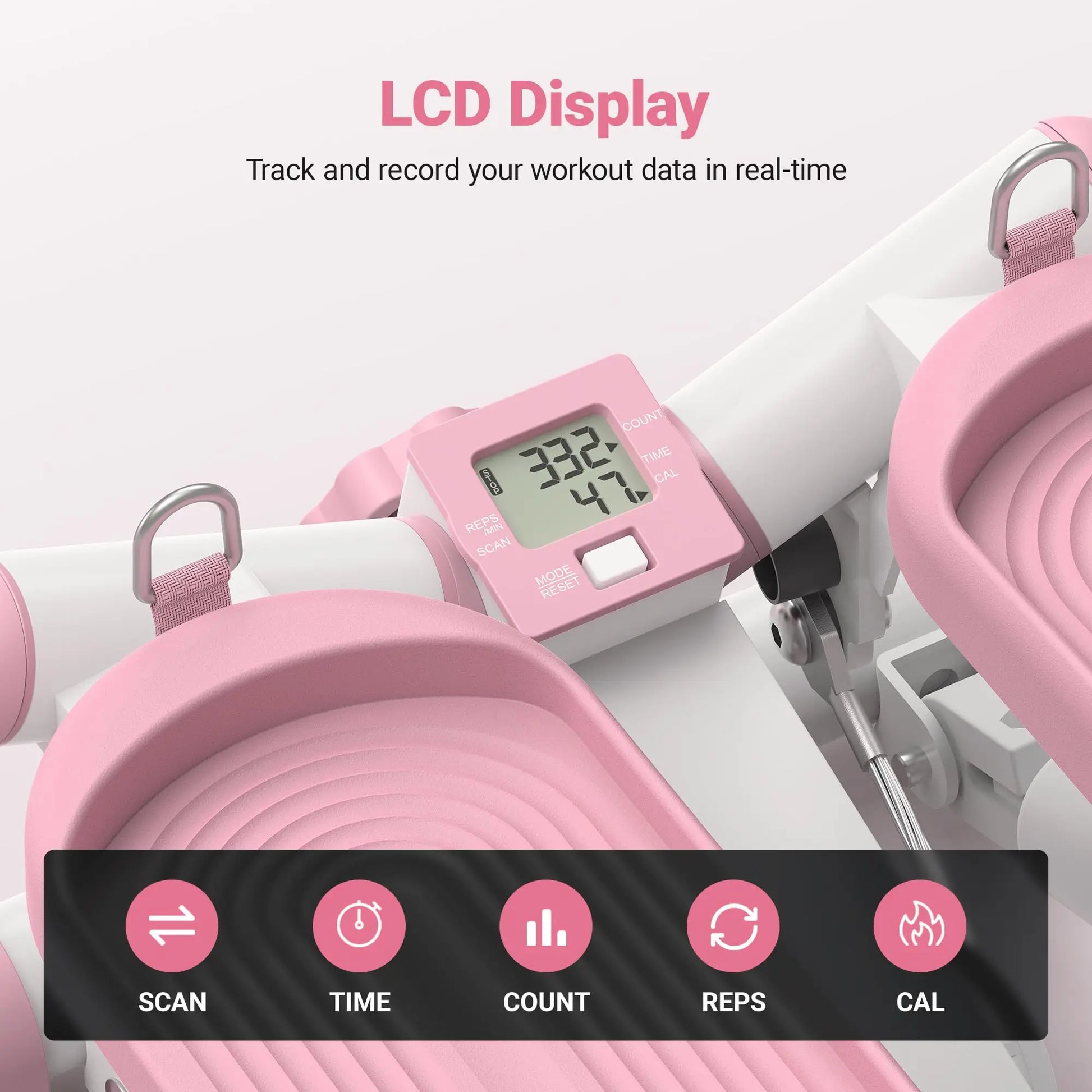【 LCD Screen 】 Stay informed and motivated with the integrated LCD screen, which displays essential workout data such as time, steps, calories burned, and more. Monitor your progress in real-time and stay on track towards your fitness goals.