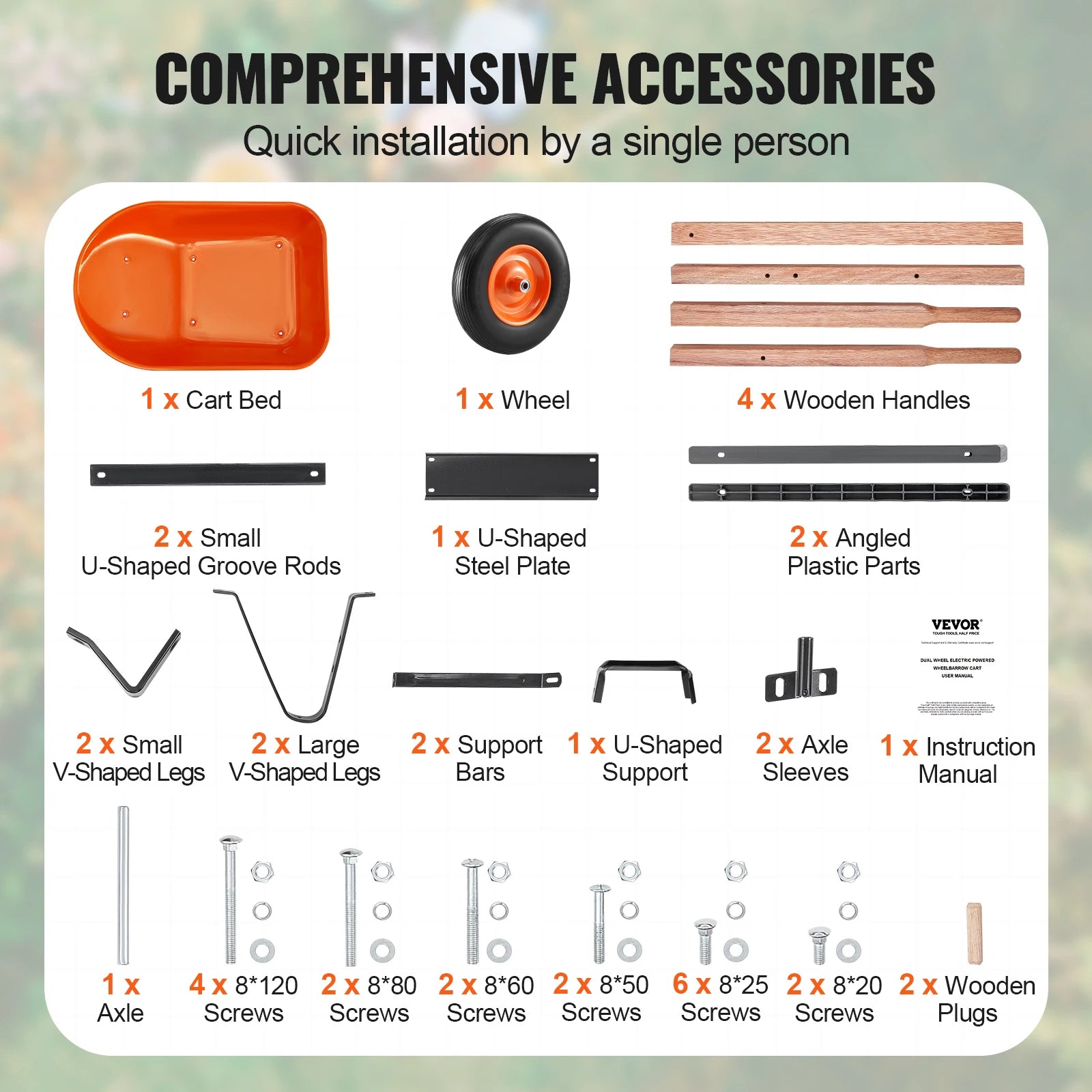 Wheelbarrow Cart 330lbs Capacity One Wheel Garden Dump Cart Wheel Barrow with Handle & 16" Wide Track Wheels for Farm